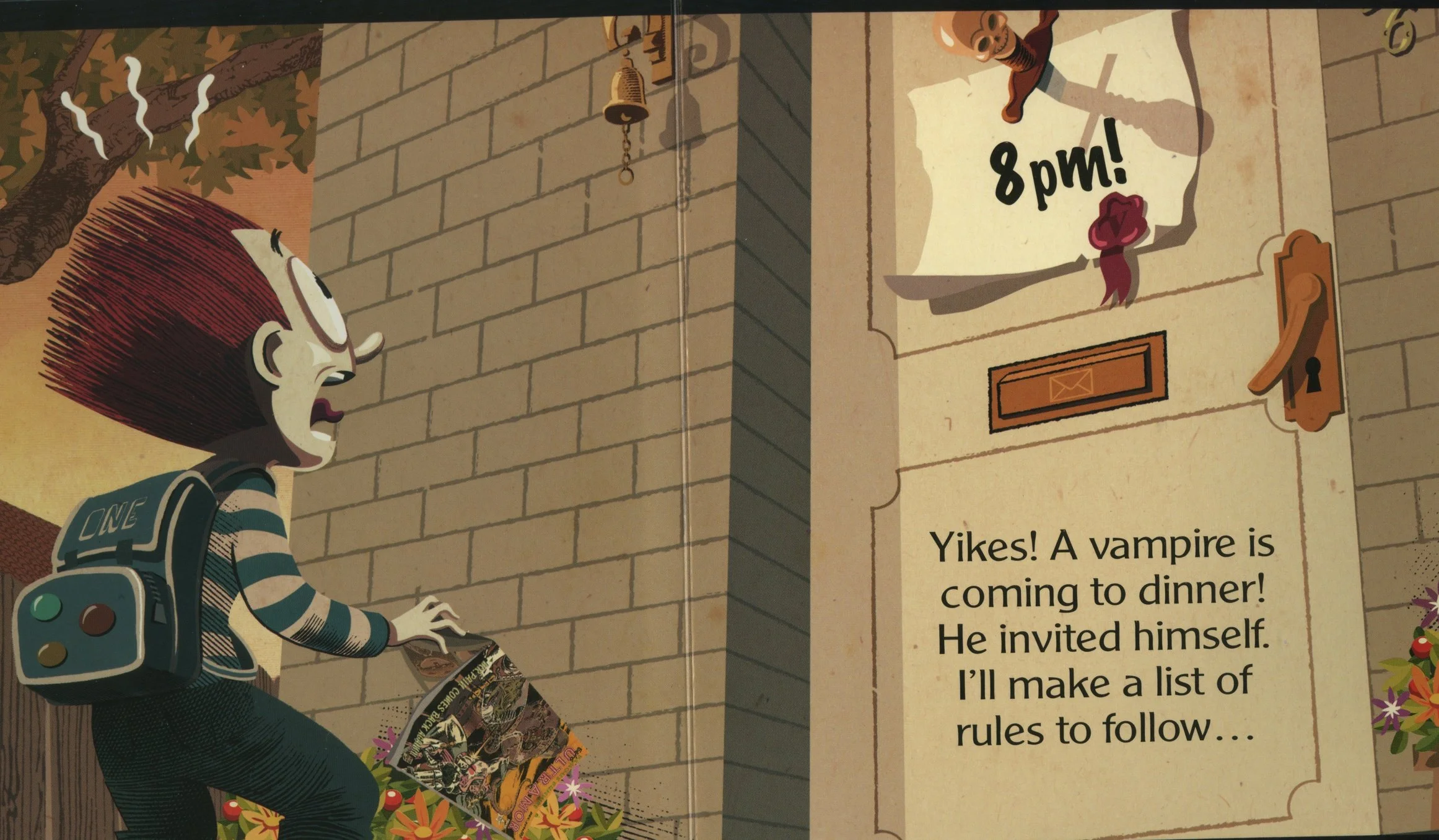 A little boy learns a vampire is coming to dinner; this book gives him the rules which should be followed and which ones can be broken!